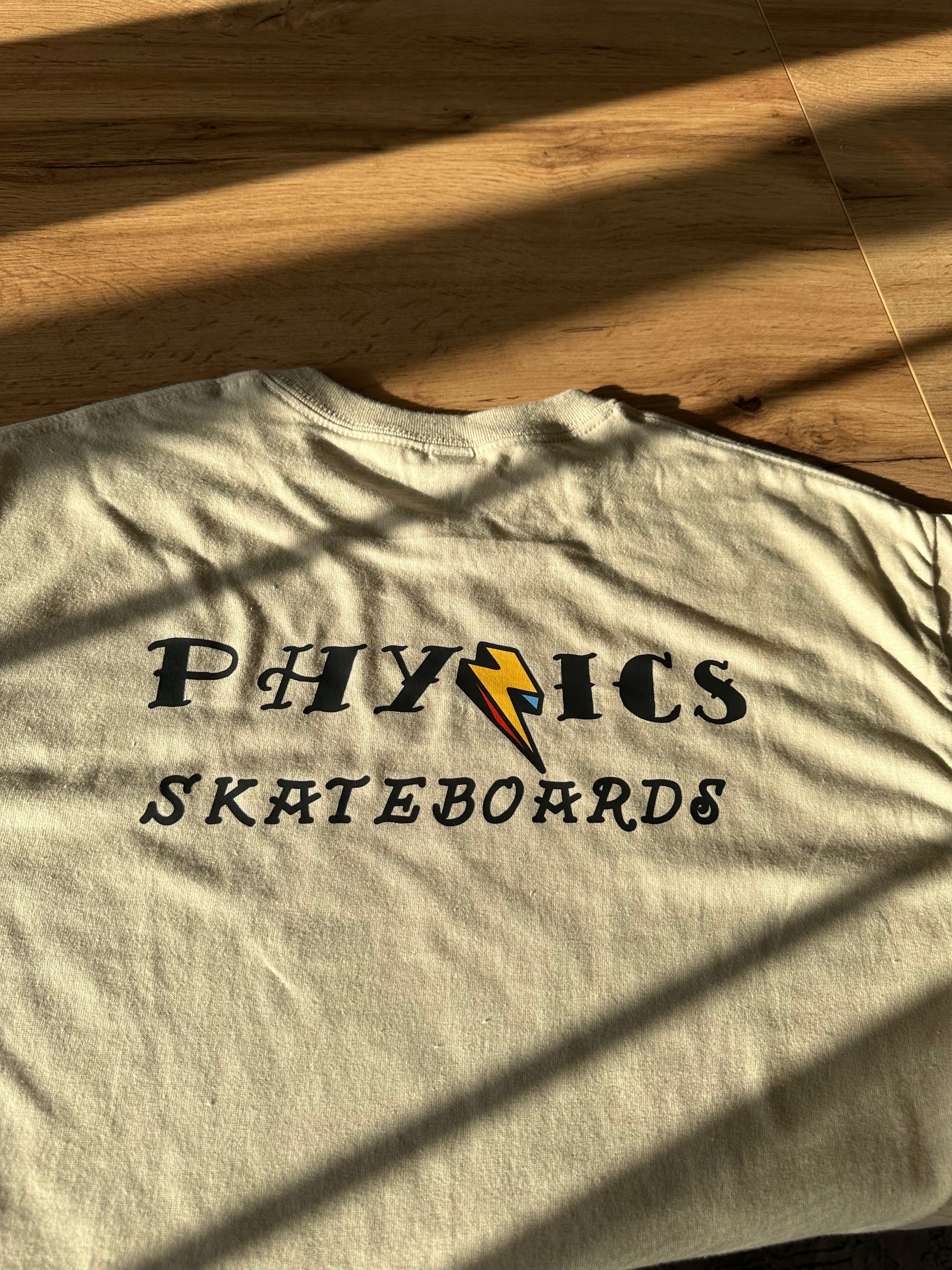 The Phyzics Graffiti Logo t-shirt is a classic fit, pre-shrunk, short-sleeve crew neck T-shirt made with breathable cotton fabric. Finished with a the graffiti-inspired Phyzics Skateboards logo centered on the chest.
