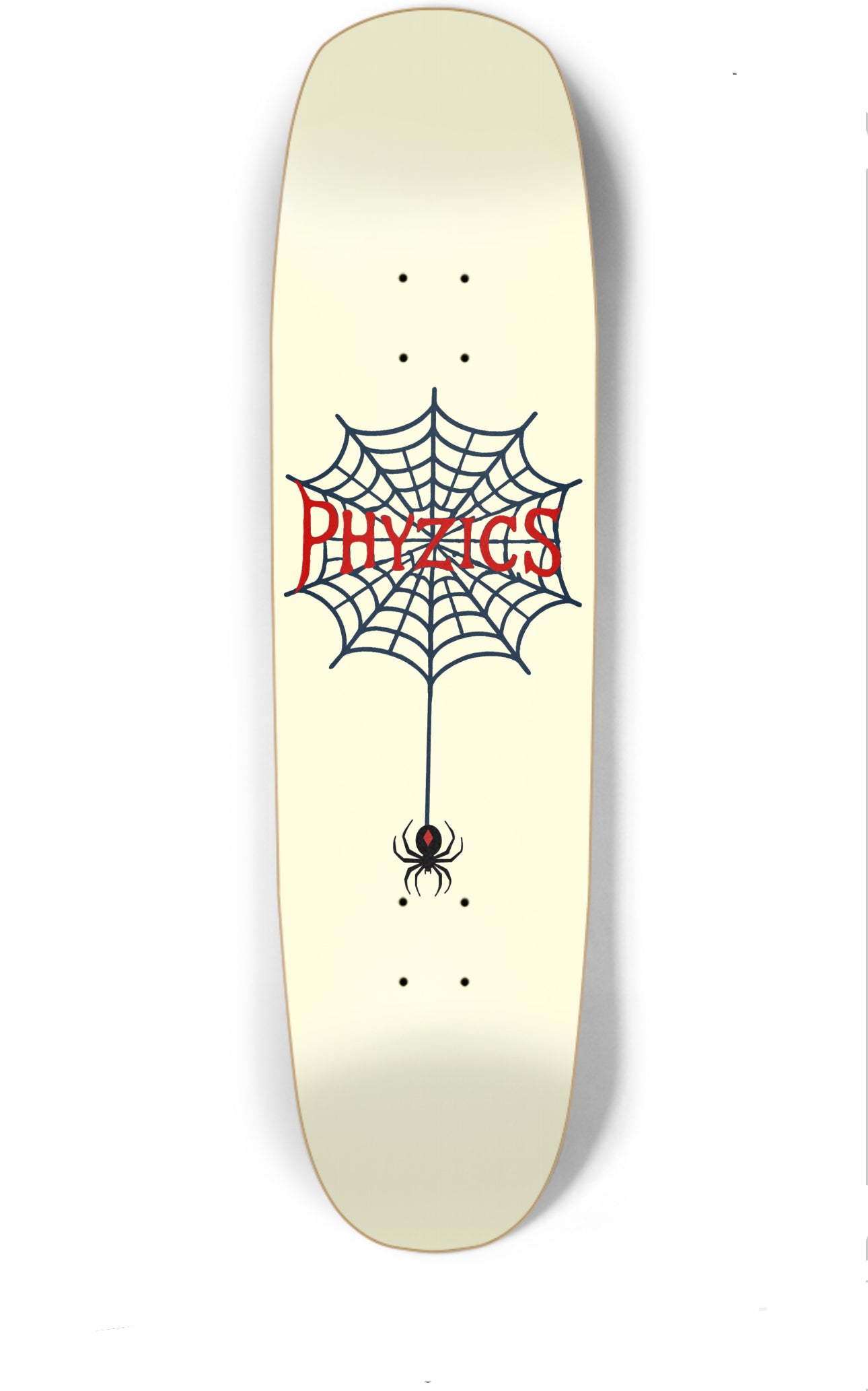 Dare to drop into the web. The Phyzics “Widow’s Web” Deck weaves together bold design and killer performance. Featuring a striking spiderweb graphic with a venomous black widow hanging below, this deck is built for skaters who aren’t afraid to get caught in the chaos. The blood-red Phyzics logo stands out against the clean bone-white background, delivering a graphic that’s both classic and deadly.